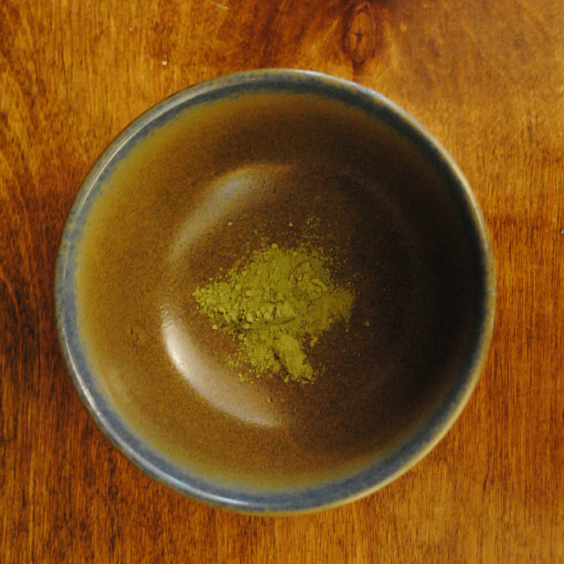 The bright-green matcha powder in the bowl before water is added.